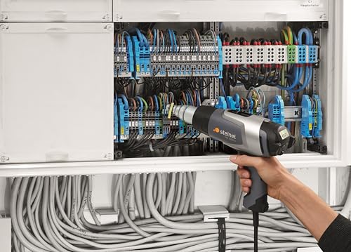 Das Steinel Heißluftgebläse HG 2320 E ist ein digital gesteuertes Profi-Gerät für präzise Heißluftanwendungen. Die Temperatur lässt sich komfortabel per Joystick in feinen 10-Grad-Schritten einstellen und wird übersichtlich auf dem LCD-Info-Display angezeigt. Mit einem Temperaturbereich von 80 bis 650 °C und einer Luftleistung bis 500 l/min eignet sich das Gerät für unterschiedlichste Aufgaben wie Schrumpfen, Erwärmen, Formen und Entfernen von Beschichtungen. Vier individuell speicherbare Programme erleichtern wiederkehrende Arbeiten. Eine Resthitzeanzeige erhöht die Sicherheit nach dem Einsatz. Die rutschfeste Standfläche und der optimierte Schwerpunkt unterstützen ermüdungsarmes Arbeiten. Eine elektronische Regelung schützt vor Hitzerückstau und trägt zur langen Lebensdauer des Motors bei. Im Set enthalten sind ein Transportkoffer, eine Reflektordüse, eine Breitstrahldüse 50 mm, eine Reduzierdüse 9 mm sowie Schrumpfschläuche. Das Gerät arbeitet kabelgebunden und benötigt keine Batterien.