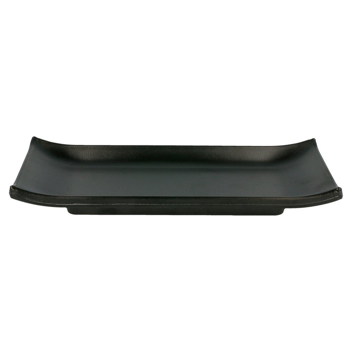 Rechteckiger Sushi Teller aus Melamin in schwarzer Ausführung für eine moderne Speisenpräsentation.