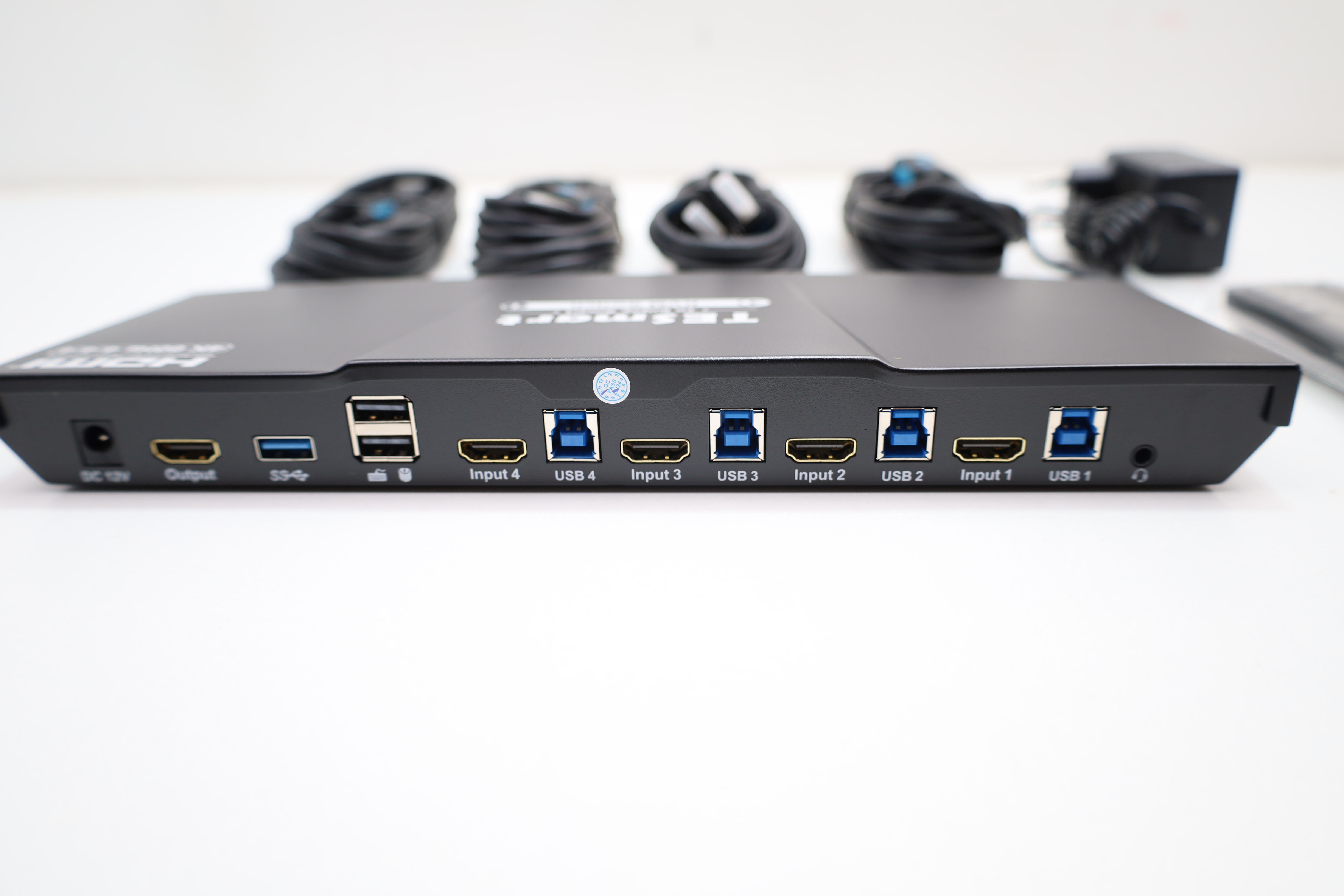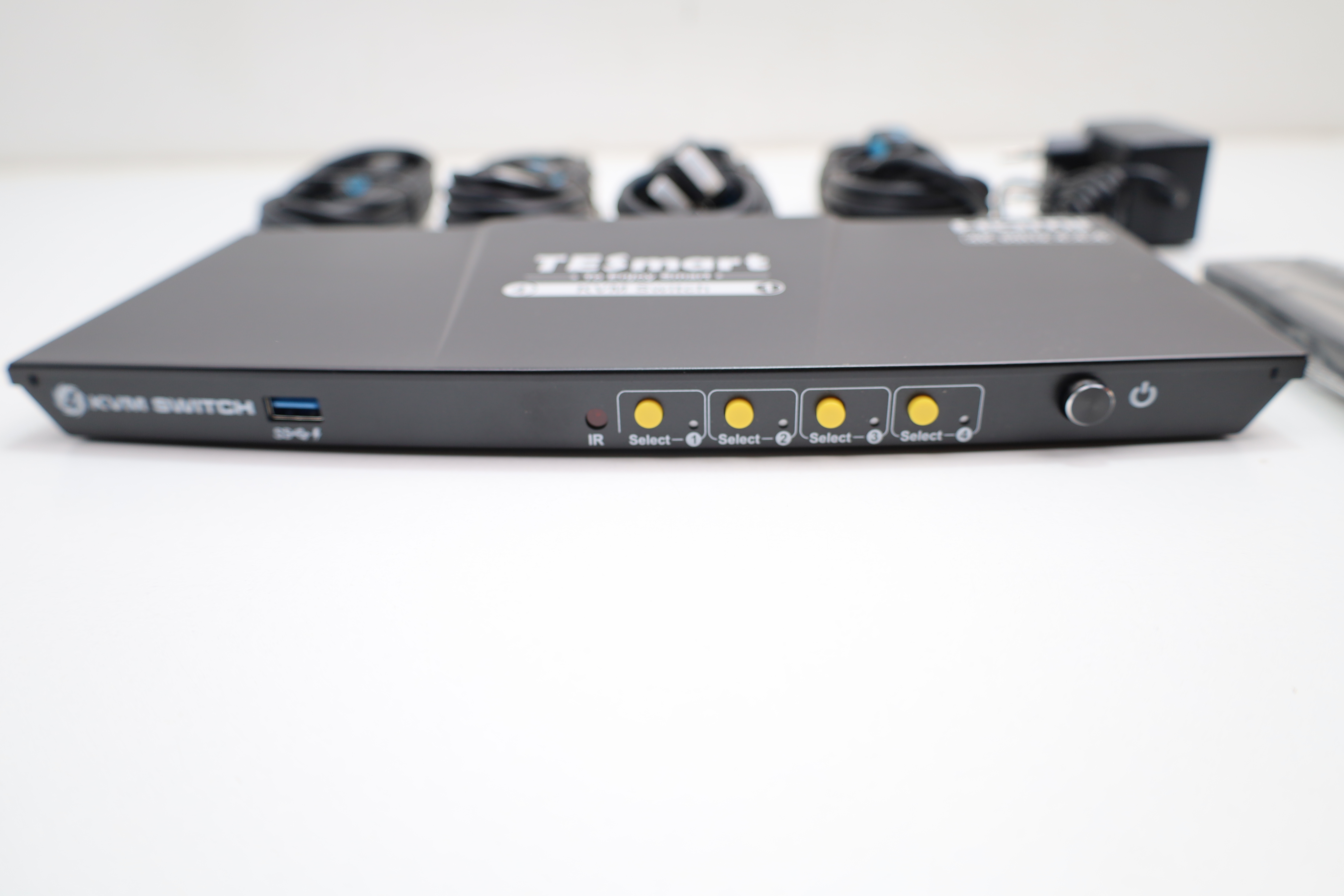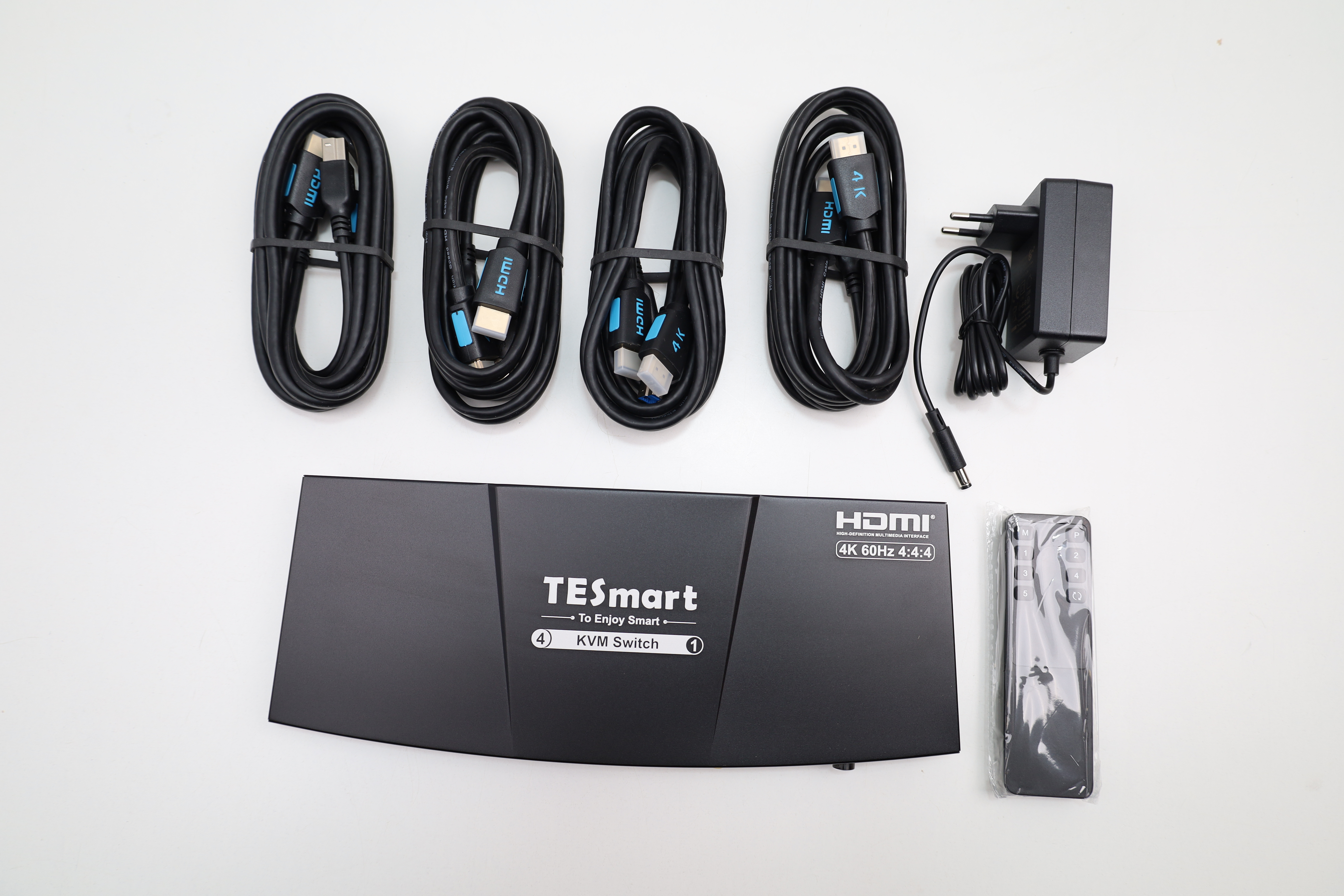 Der TESmart KVM-Switch ermöglicht das Umschalten von bis zu vier Computern auf einen Monitor und die gemeinsame Nutzung von Tastatur und Maus. Er unterstützt eine Ultra-HD-Auflösung bis 3840 x 2160 bei 60 Hz für eine scharfe und flüssige Darstellung. Über USB 3.0 lassen sich Peripheriegeräte wie Drucker, Scanner, Webcam oder externe Speicher komfortabel zwischen den angeschlossenen Computern teilen. Die Datenübertragung erfolgt mit bis zu 5 Gbit pro Sekunde für schnelle Dateiübertragungen. Ein integrierter EDID-Emulator sorgt dafür, dass Auflösung und Bildformat stabil bleiben und Fenster beim Umschalten nicht unnötig neu angeordnet werden. Die Umschaltung ist wahlweise über Tasten am Gerät, über Tastatur-Hotkeys oder per Infrarot-Fernbedienung möglich. Separate Audio- und Mikrofonanschlüsse erlauben eine flexible Tonumschaltung unabhängig vom Bildsignal. Die Umschaltung von Tastatur und Maus erfolgt ohne spürbare Verzögerung für effizientes Arbeiten. Das Gerät ist mit gängigen Betriebssystemen wie Windows und Mac kompatibel und eignet sich für Büro, Homeoffice und Multimedia-Anwendungen.