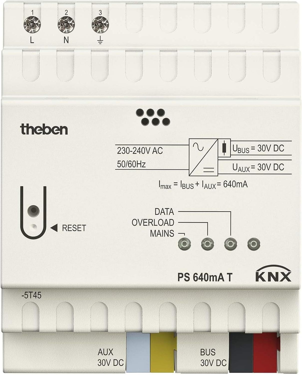 Die Theben PS 640 mA T ist eine KNX Spannungsversorgung zur zuverlässigen Versorgung von KNX Anlagen. Sie stellt einen Ausgangsstrom von 640 mA bereit und unterstützt damit den stabilen Betrieb von KNX Teilnehmern. Das Gerät dient der Spannungsversorgung und der Überwachung der KNX Systemspannung für eine erhöhte Betriebssicherheit. Zusätzlich steht eine 30 V DC Hilfsspannung zur Verfügung. Ein integrierter Reset Taster ermöglicht einen Bus Reset mit einer Dauer von 20 Sekunden. Die Ausführung ist dauerkurzschlussfest und damit für den dauerhaften Einsatz im Schaltschrank geeignet. Konzipiert für den Einsatz in der Gebäudeautomation wie Beleuchtung, Beschattung und HLK Anwendungen. Geeignet für Installationen, bei denen eine stabile KNX Versorgung mit Überwachungsfunktion benötigt wird. Kompakte Lösung für professionelle KNX Installationen im privaten und gewerblichen Umfeld.