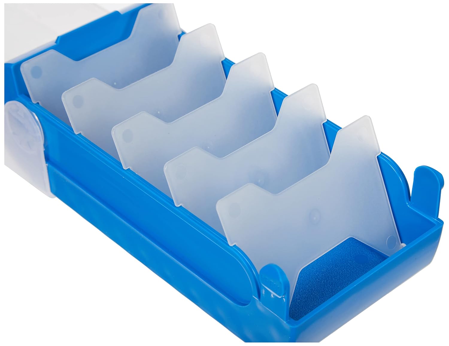Der TimeTEX Karteikasten im Format A8 eignet sich ideal zum strukturierten Lernen und Wiederholen mit der 5 Fächer Lernmethode. Das robuste Kunststoffgehäuse ist für den täglichen Einsatz in Schule, Studium oder Büro ausgelegt. Der halbtransparente Deckel schützt den Inhalt vor Staub und lässt sich sicher per Schnappverschluss schließen. Für mehr Komfort kann der Deckel unter die Box eingeschoben werden und bleibt dabei fest mit dem Kasten verbunden. Im Inneren sorgen fünf Trennwände für eine übersichtliche Sortierung nach Lernstand oder Themen. Die kompakte Größe passt gut in Rucksack, Schultasche oder Schreibtischschublade. Geeignet für verschiedene A8 Karteikarten, zum Beispiel liniert oder kariert. Farbe der Box ist blau, der Deckel ist halbtransparent. Außenmaße betragen 20 x 9 x 6,5 cm. Das Eigengewicht liegt bei etwa 166 g.