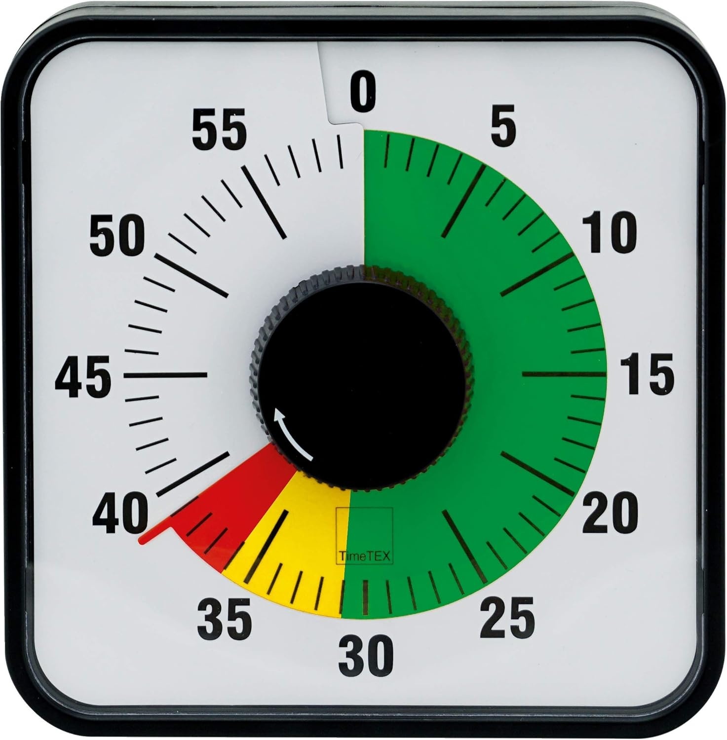 Die TimeTex Zeitdaueruhr mit Ampelscheibe eignet sich ideal für Unterricht, Training und strukturierte Arbeitsphasen. Das große Format von 19 x 19 cm sorgt für gute Ablesbarkeit auch aus größerer Entfernung. Die farbige Zeitscheibe visualisiert den Zeitablauf in drei Zonen und unterstützt so ein klares Zeitmanagement. Grün zeigt ausreichend Restzeit, gelb beginnt 8 Minuten vor Ablauf und rot beginnt 3 Minuten vor Ablauf. Nach Ablauf der eingestellten Zeit ertönt ein akustisches Signal. Die Einstellung erfolgt über einen extra großen Drehknopf, der auch von Kindern gut bedient werden kann. Das Ziffernblatt ist durch ein Schutzglas abgedeckt. Für flexible Platzierung ist ein rückseitiger Magnet zum Befestigen an Metallflächen vorhanden. Zusätzlich verfügt die Uhr über ausklappbare Standfüßchen für die Nutzung auf dem Tisch. Eine Wandaufhängung ist ebenfalls möglich. Der Betrieb erfolgt automatisch ohne Batterien.