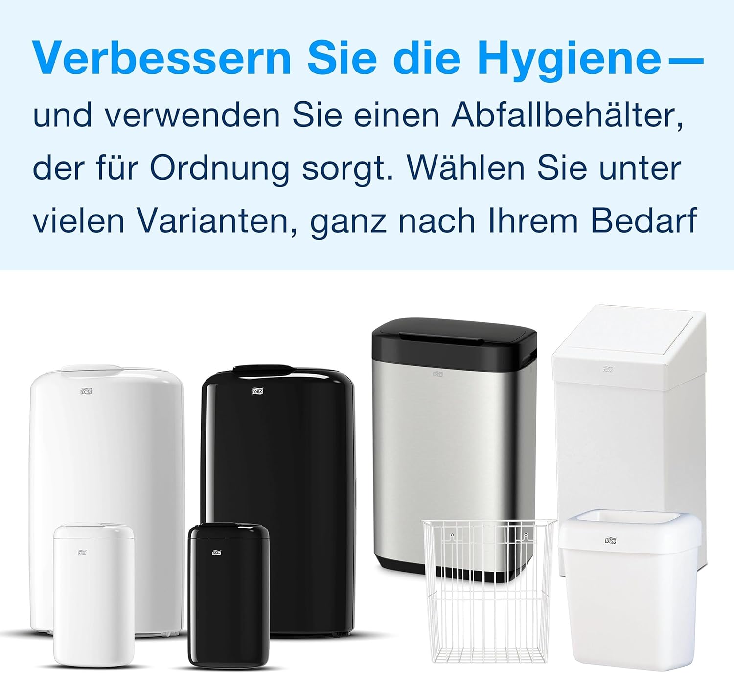 Der Tork Elevation Papierkorb mit 5 Litern Fassungsvermögen ist ein kompakter Sanitärabfalleimer für Waschräume, Bäder und Toilettenkabinen. Das moderne Elevation Design wirkt dezent und professionell und passt in unterschiedliche Raumkonzepte. Der selbstschließende Deckel unterstützt eine hygienische Nutzung und sorgt für eine saubere Optik. Der Abfallbeutel wird verdeckt geführt, wodurch der Inhalt weniger sichtbar ist. Durch die platzsparenden Maße eignet sich der Behälter besonders für kleine Bereiche und die Entsorgung von Hygieneartikeln in der Kabine. Die Montage ist flexibel möglich, je nach Bedarf an der Wand oder als Standlösung. Die glatte Kunststoffoberfläche ist pflegeleicht und für den regelmäßigen Einsatz im Sanitärbereich ausgelegt. Das Behältersystem ist auf eine einfache Wartung und zügiges Entleeren ausgelegt. Farbe Weiß. Maße 33,8 x 19 x 16 cm.