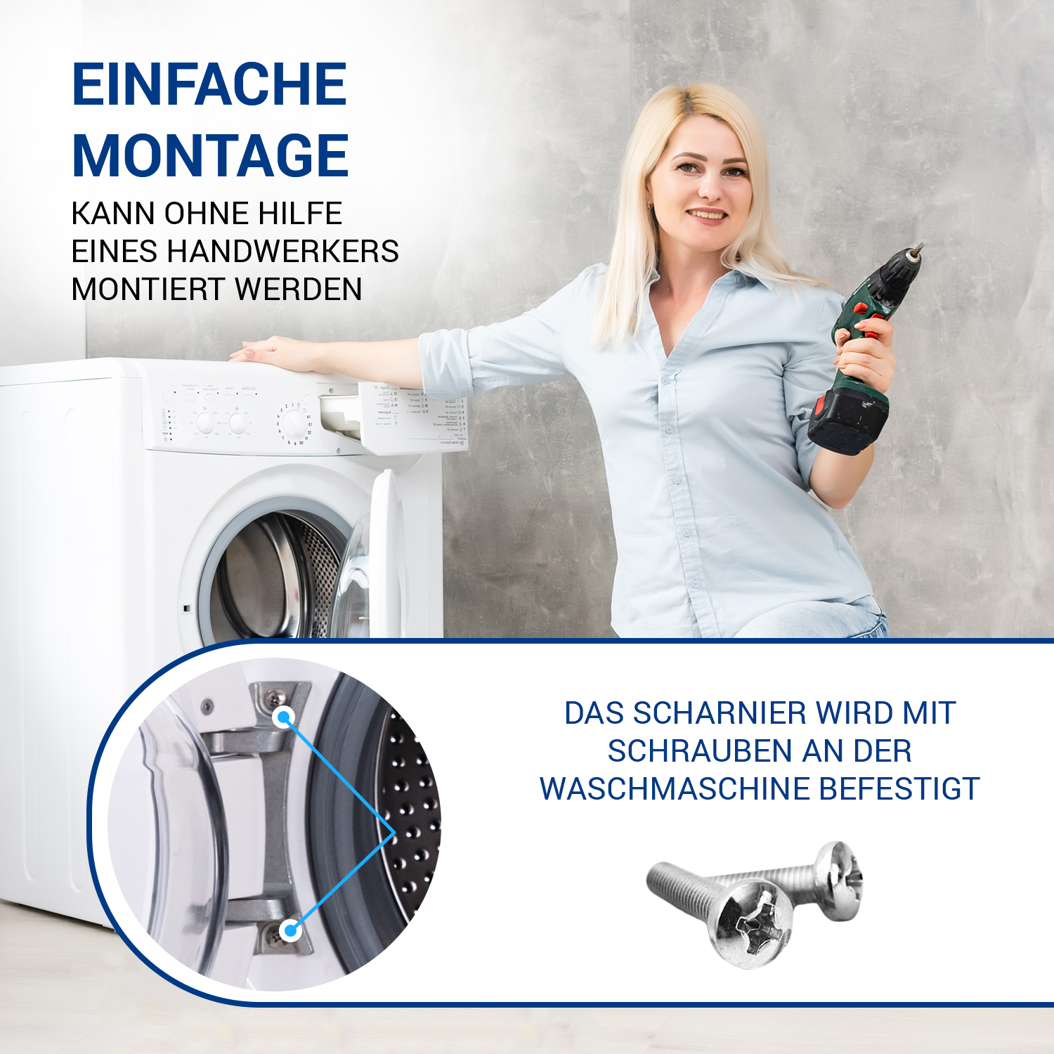 Türscharnier wie Bosch 00634198 mit Buchsen für Waschmaschine Frontlader