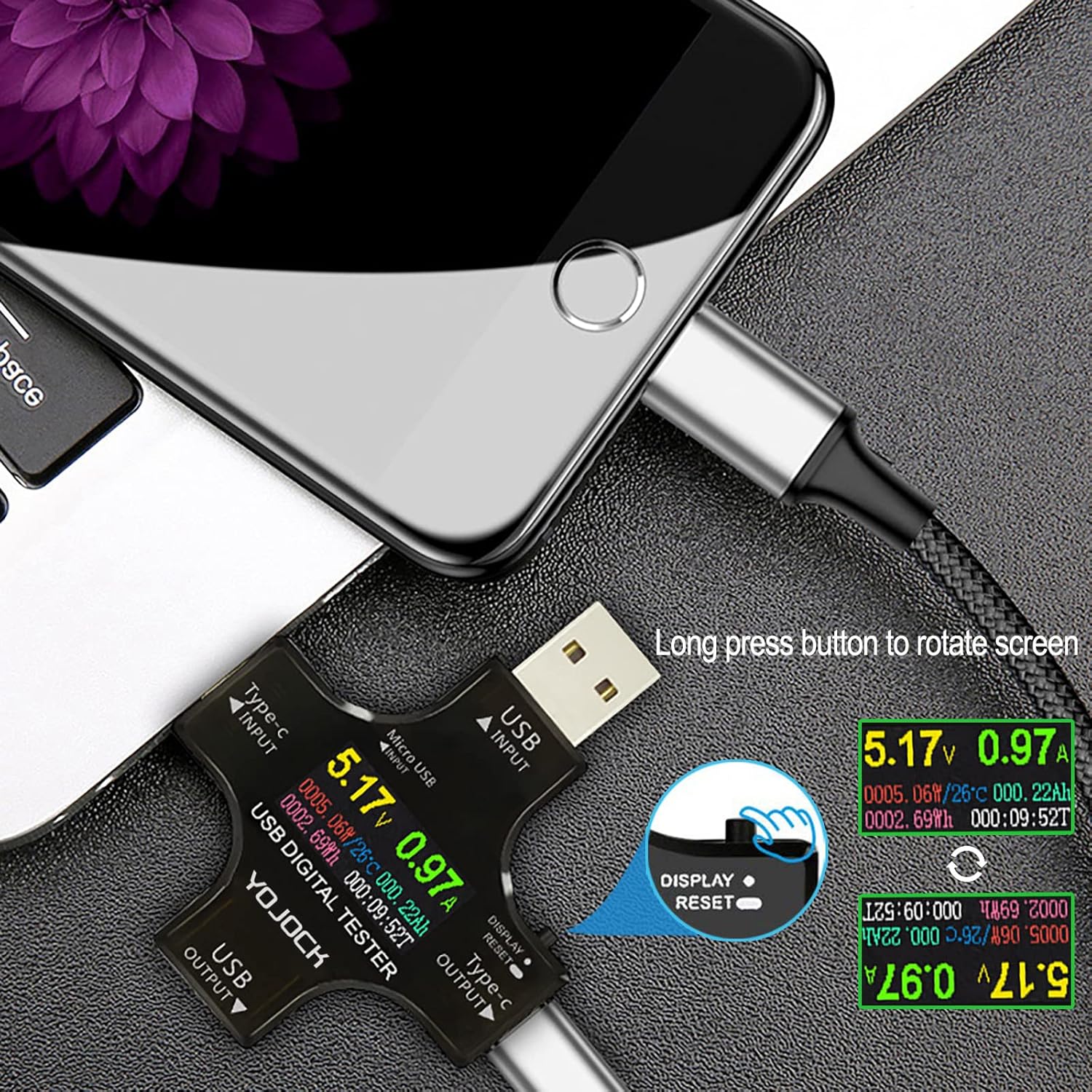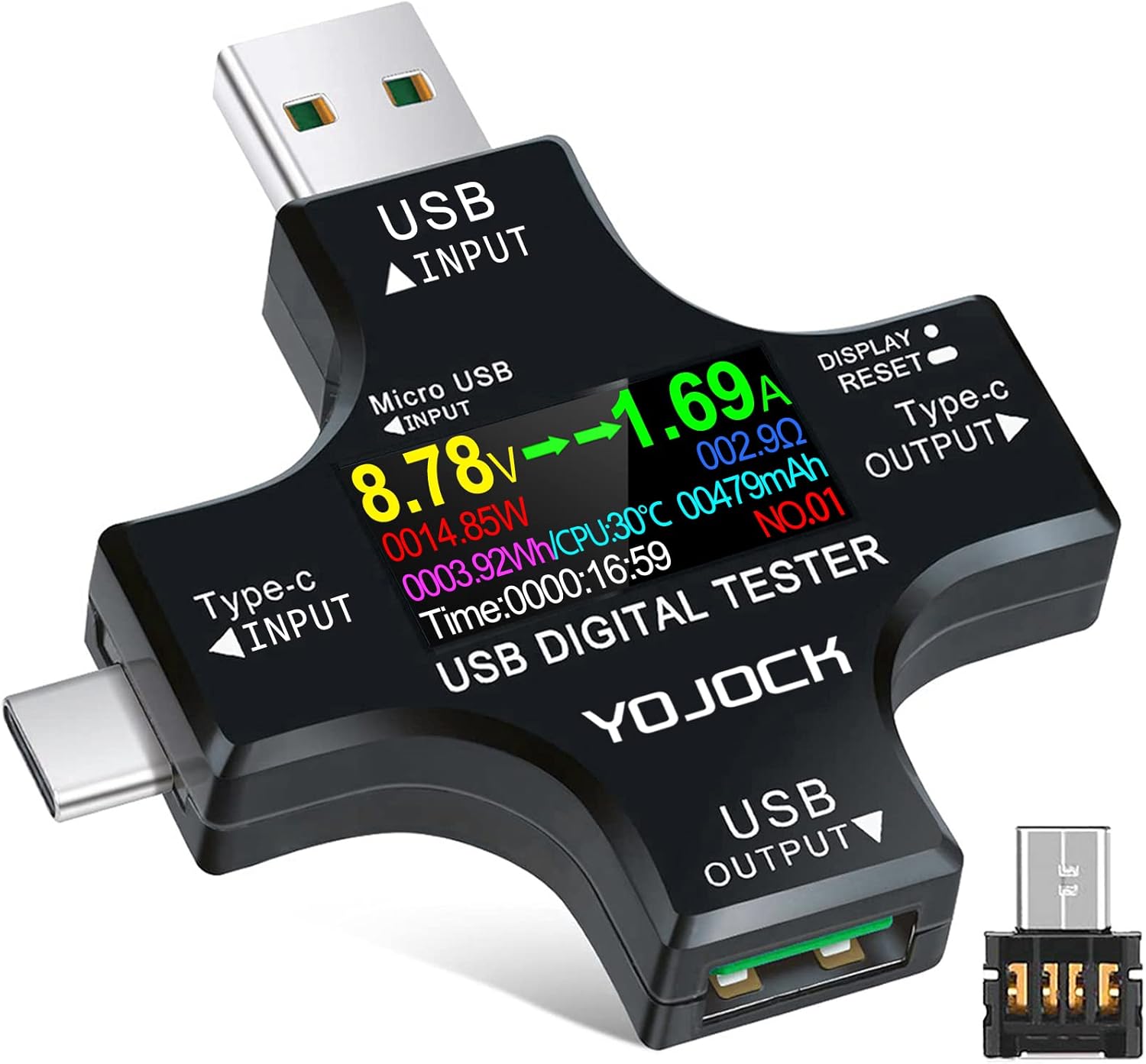 Dieses USB Strommessgerät dient zur Messung und Kontrolle von Ladeparametern an USB A und USB C Anschlüssen. Es misst Spannungen im Bereich von 3,6 V bis 32 V und Ströme von 0 bis 8,0 A. Das Gerät zeigt unter anderem Spannung, Strom, Leistung, Kapazität und elektrische Energie übersichtlich auf einem Farbbildschirm an. Es bietet mehrere umschaltbare Anzeigeseiten, sodass Messwerte je nach Bedarf unterschiedlich dargestellt werden können. Unterstützt werden gängige Schnellladeprotokolle wie PD und QC, wodurch sich Ladegeräte, Kabel und Verbraucher im Alltag gut prüfen lassen. Das Messgerät eignet sich auch zum Testen von Powerbanks durch kontrollierte Entladung und Erfassung der Kapazität. Ein mitgelieferter OTG Adapter ermöglicht flexible Anschlussvarianten für kompatible Geräte. Integrierte Schutzfunktionen wie Überspannungsschutz, Überstromschutz und Unterspannungsschutz erhöhen die Betriebssicherheit. Die automatische Datenspeicherung bei plötzlichem Ausschalten hilft, Messwerte zu erhalten. Geeignet für viele USB C Geräte wie Smartphones, Tablets und Notebooks sowie passende Ladegeräte.