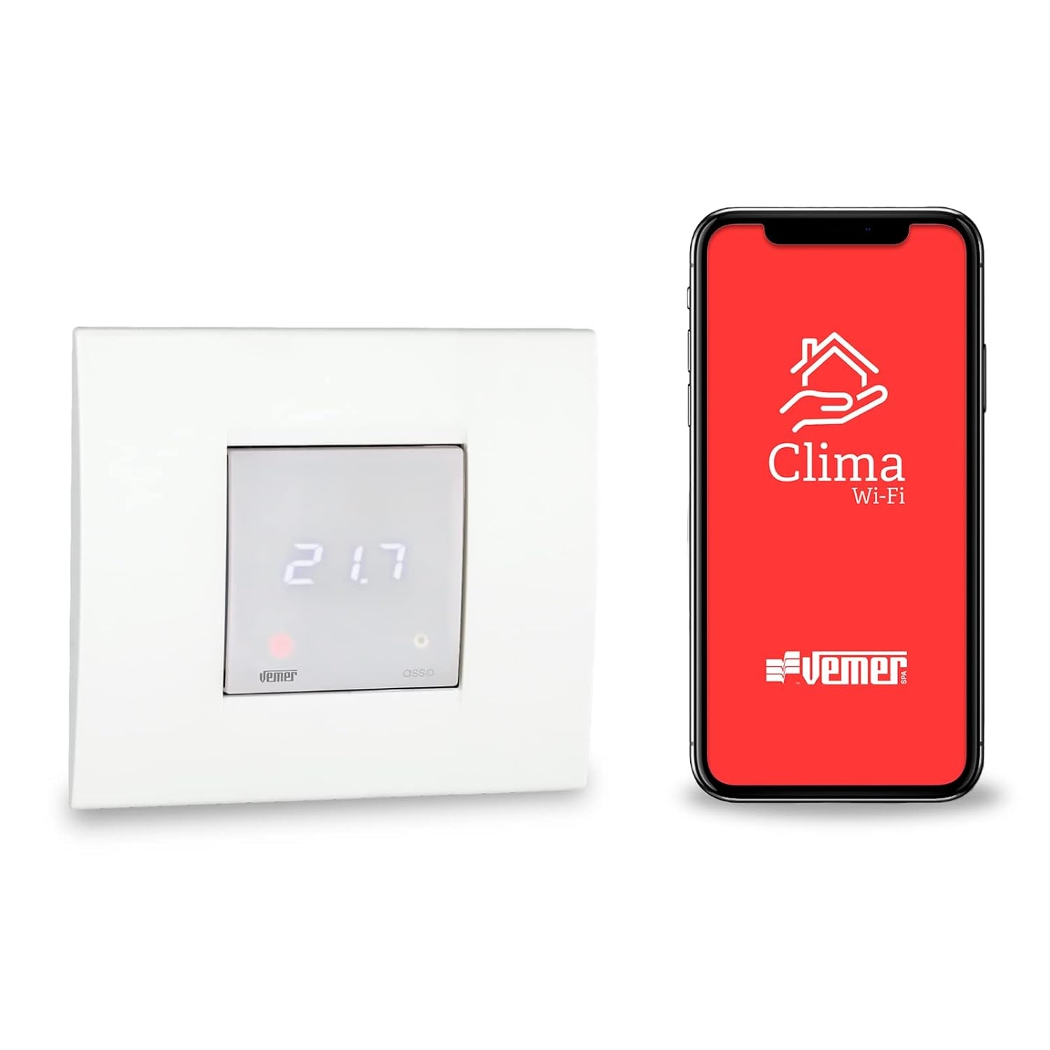 Das Vemer VE780200 ASSO ist ein WLAN Thermostat zur komfortablen Steuerung von Heizungs oder Klimaanlagen. Die Bedienung ist per iOS oder Android Smartphone möglich und erlaubt die Fernsteuerung über das Heimnetz. Durch die Unterputzmontage eignet sich das Gerät für eine saubere und platzsparende Installation und benötigt nur zwei Module. Eine Wochenprogrammierung unterstützt den automatischen Betrieb nach Zeitplänen. Es stehen drei Temperaturstufen zur Anpassung an Tages und Nachtbetrieb zur Verfügung. Eine Frostschutztemperatur hilft dabei, ein mögliches Einfrieren der Anlage zu vermeiden. Das Thermostat ist für viele gängige Heiz und Klimasysteme geeignet. Die Stromversorgung erfolgt mit 230 V. Adapter für die Montage mit Abdeckungen wichtiger Schalterprogramme sind im Lieferumfang enthalten. Kompatibilität mit Google Home und Amazon Alexa ermöglicht die Einbindung in ein Sprachsteuerungs System. Hergestellt in Italien.