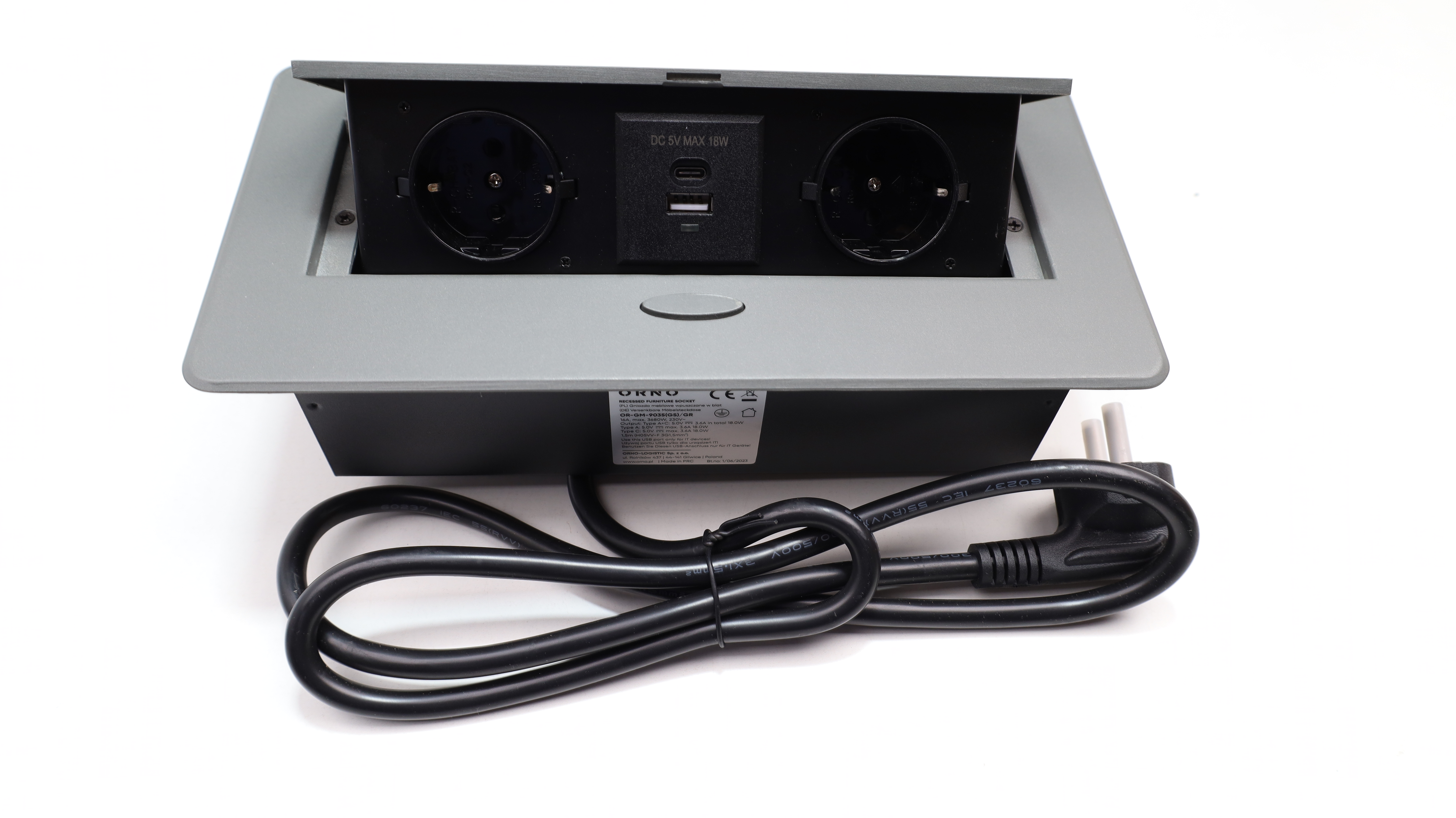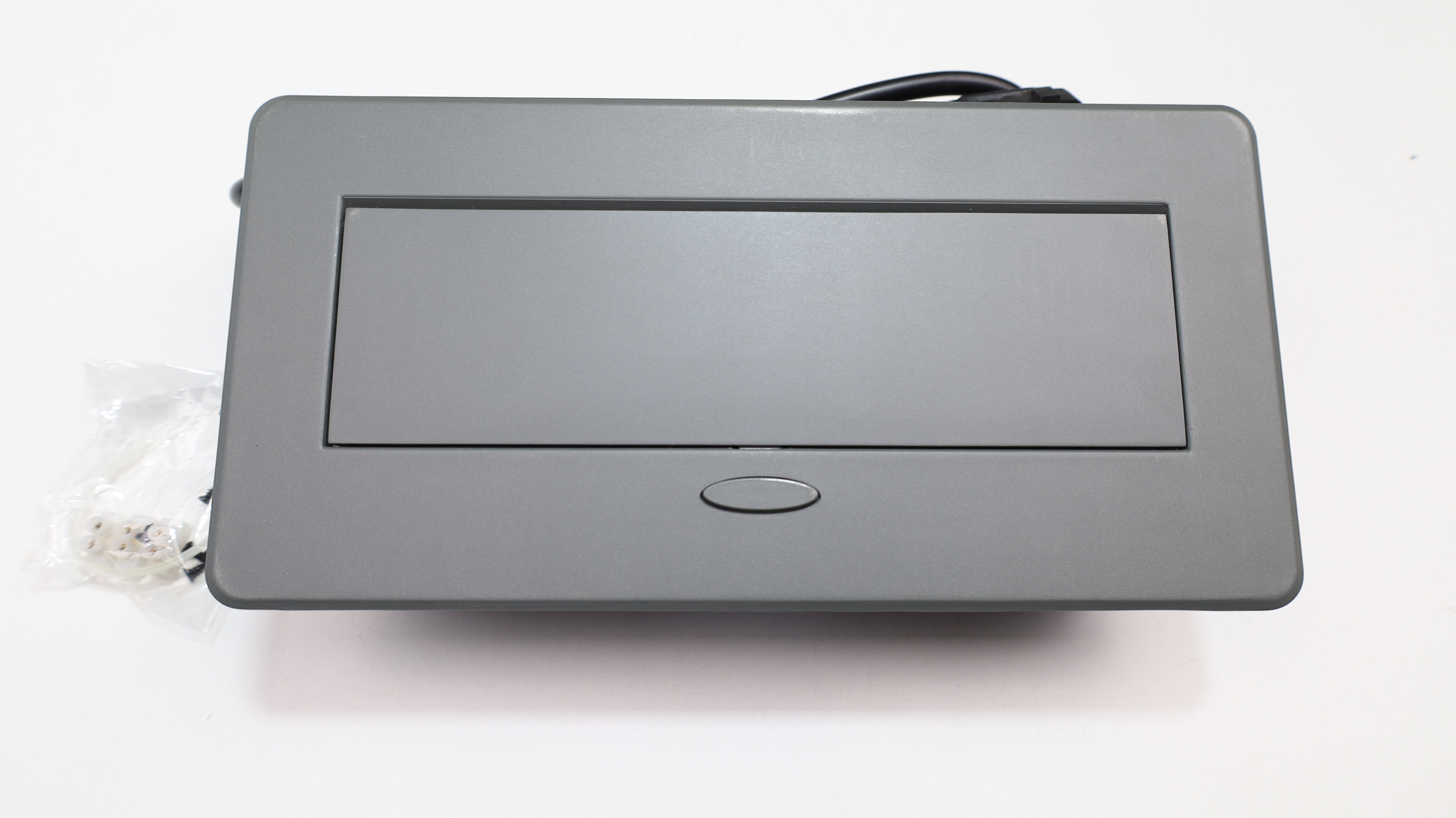 Diese versenkbare Einbausteckdose in der Farbe Graphit eignet sich ideal für den Einbau in Arbeitsplatten, Böden oder Werkbänke und sorgt für eine aufgeräumte, moderne Stromversorgung am Arbeitsplatz. Die Frontabdeckung besteht aus Aluminium-Spritzguss, das Gehäuse aus stabilem Stahlblech. Der Klappdeckel verfügt über eine integrierte Dämpfung für eine sanfte Softöffnung. Ausgestattet ist die Einheit mit zwei Schutzkontakt-Steckdosen für 250 V Wechselspannung bei maximal 16 A und bis zu 3680 Watt. Zusätzlich stehen ein USB-A Anschluss mit 5 V sowie ein USB-C Anschluss mit 5 V zur Verfügung, mit einer maximalen USB-Gesamtleistung von 3,6 A. Der Anschluss erfolgt anschlussfertig über ein Schutzkontakt-Netzkabel mit 1,5 m Länge. Die Abdeckung misst 265 x 132 mm, die Einbaudose 222 x 108 mm. Für die Montage wird ein Einbauloch von 226 x 112 mm benötigt, die Einbautiefe beträgt 65 mm. Die Frontplatte hat eine Stärke von 2,5 mm und bietet eine robuste, langlebige Ausführung für den täglichen Einsatz.