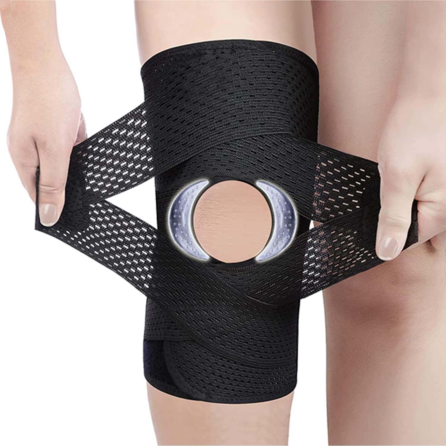 – ✅ Verstellbare Kniebandage mit offener Kniescheibe, V-förmigem Gurt und seitlichen Stabilisatoren zur Unterstützung des Kniegelenks