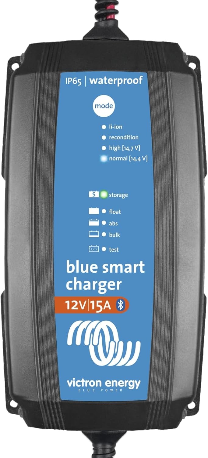 Das Victron Energy Blue Smart IP65 Batterie-Ladegerät ist für 12-Volt-Batterien ausgelegt und liefert bis zu 15 Ampere Ladestrom für effizientes Laden und zuverlässige Erhaltung. Es unterstützt sowohl Blei-Säure-Batterien als auch Lithium-Ionen-Batterien und eignet sich damit für viele Einsatzbereiche wie Auto, Motorrad, Boot oder Werkstatt. Der integrierte 7-Stufen-Ladealgorithmus passt den Ladevorgang automatisch an den Batteriezustand an und sorgt für eine schonende Ladung zur Verlängerung der Batterielebensdauer. Über das integrierte Bluetooth lässt sich das Ladegerät mit der VictronConnect App verbinden, um Ladezustand, Spannung und Einstellungen komfortabel zu überwachen. Eine Zwangsladefunktion ermöglicht das Wiederanlaufen des Ladevorgangs bei stark entladenen Batterien, während der integrierte Desulfator zur Regeneration von Batterien beitragen kann. Das robuste IP65-Gehäuse ist staub- und spritzwassergeschützt und damit für Umgebungen mit moderater Feuchtigkeit und Staub geeignet. Der Anschluss an 230V Netzspannung erfolgt über einen CEE 7/17 Netzstecker. Das Gerät ist für langfristige Batteriepflege konzipiert und unterstützt den sicheren Betrieb durch eine geregelte, automatische Ladeführung.