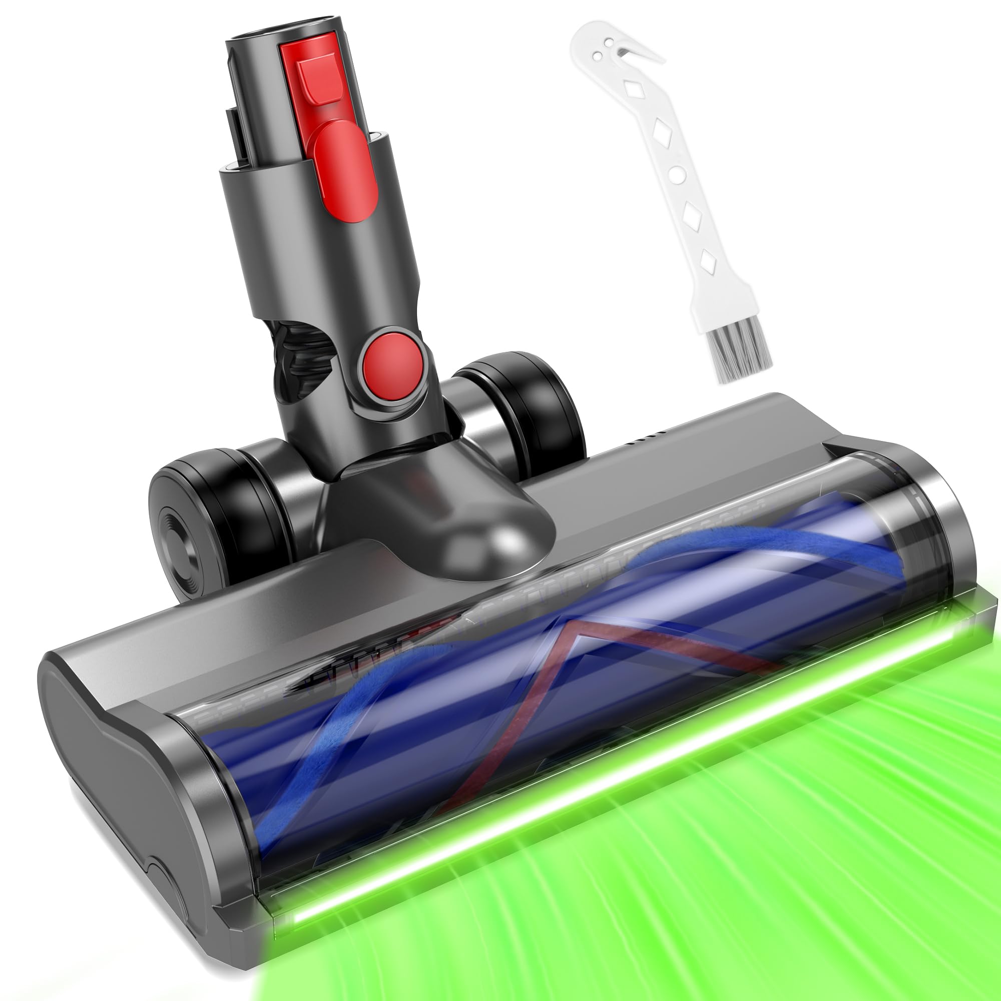 Diese elektrische Bodendüse von Vonsera ist als Ersatzbürstenkopf für Staubsauger der Reihen V7, V8, V10, V11 und V15 geeignet und unterstützt die gründliche Reinigung von Hartböden und Teppichen. Der Direktantrieb sorgt für eine kraftvolle Aufnahme von Staub, Krümeln und Haaren im Alltag. Eine integrierte LED-Beleuchtung an der Front schaltet sich beim Saugen ein und verbessert die Sicht in dunklen Bereichen, zum Beispiel unter Möbeln. Das schwenkbare Gelenk ermöglicht eine flexible Führung der Düse für enge Stellen und Kanten. Das Gehäuse besteht aus robustem ABS, ausgelegt für eine langlebige Nutzung. Die Borsten sind weich und bodenschonend, wodurch empfindliche Oberflächen sanft gereinigt werden können. Zwei Rollen unterstützen ein gleichmäßiges, leichtes Gleiten und reduzieren den Kraftaufwand beim Führen. Die Düse ist für die schnelle Montage ohne zusätzliches Zubehör ausgelegt. Farbe Grau, Stil Classic. Lieferumfang 1 elektrischer Bodenkopf sowie 1 Reinigungsbürste. Batterien werden nicht benötigt.